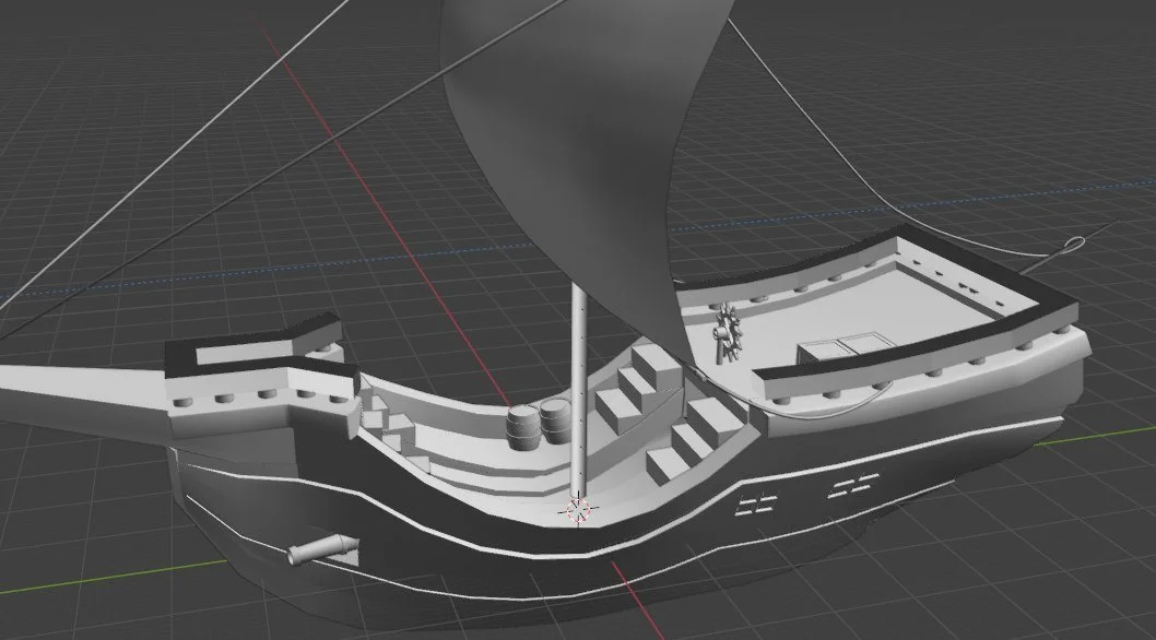 I wanted this scene to look stylistic, so even when modeling the ship, I made some adjustments. The canons are in front of it instead of being on the sides. This was a personal choice.